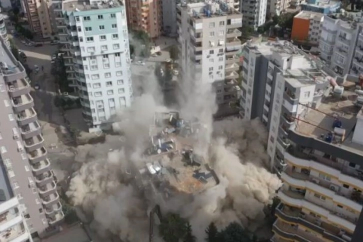 Asrın felaketi olarak nitelendirilen, merkez üssü Kahramanmaraş olan depremde Adana'da 13 bina yıkılırken 418 vatandaş hayatını kaybetti. Bu depremde 200 bina da ağır hasar aldı. Ağır hasarlı binaların yıkımına ise başlandı. Güzelyalı Mahallesi'nde bulunan Ezgi Apartmanı da ağır hasar aldığı için boşaltıldı. Yıkım kontrollü şekilde gerçekleştirildi. Yıkım hem havadan hem de karadan görüntülendi. Dron ile görüntülenen yıkımda bina saniyeler içinde yerle bir olurken, binadan geriye toz bulutu kaldı. Yıkımda çevredeki binalar zarar görmedi.