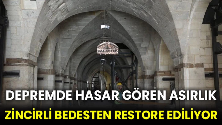 Gaziantep'te, Kahramanmaraş merkezli 6 Şubat depremlerinde hasar gören Vakıflar Genel Müdürlüğü mülkiyeti ve korumasındaki kültürel miras eserlerinin ayağa kaldırılması için başlatılan çalışmalar devam ediyor. Gaziantep'te, depremde hasar alan 32 tarihi yapının restorasyonu Kültür ve Turizm Bakanlığına bağlı Gaziantep Vakıflar Bölge Müdürlüğü tarafından titizlikle sürdürülüyor. Birçok medeniyete ev sahipliği yapan Gaziantep'te hasar alan 32 vakıf eserinin restorasyon çalışmaları kapsamında depremlerde hasar gören tarihi Zincirli Bedesten'de de çalışmalar devam ediyor.