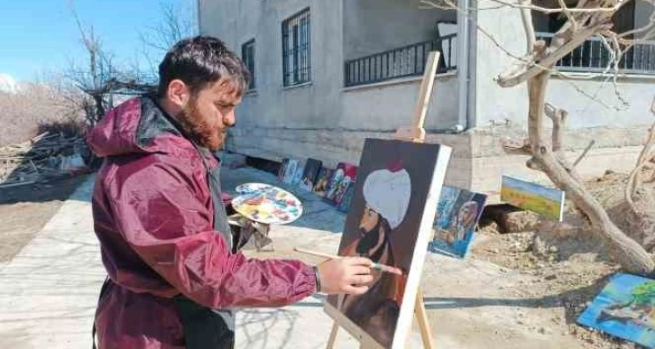 Adıyaman'ın Gölbaşı ilçesine bağlı Ozan köyünde depremde evleri 2 metre ileriye kayan Emin Atmaca, yaptığı resimleri yeni ev yapmak için satışa çıkardı.