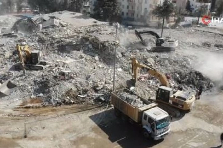 Kahramanmaraş merkezli depremlerden en çok etkilenen illerden Malatya'da yıkılan binalarda enkaz kaldırma çalışmaları devam ediyor. Depremin 21'inci gününde iş makineleri ile kentin belirli bölgelerinde enkaz kaldırma çalışmaları yürütülmeye devam ederken, enkazlardan kaldırılan molozlar ise hafriyat kamyonlarıyla şehir merkezinin dışına taşınıyor. Yürütülen enkaz kaldırma çalışmaları dron ile görüntülendi.
