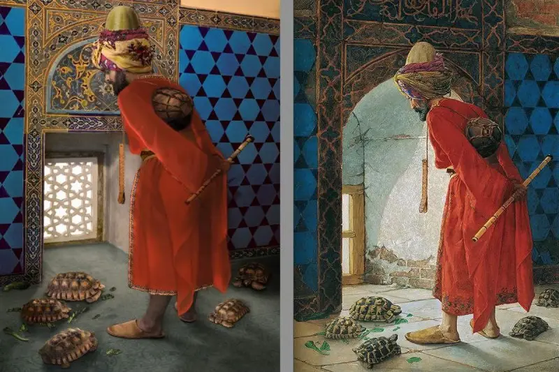 Fotoğrafçı Neslihan Sağır Çetin, Osman Hamdi Bey'in "Kaplumbağa Terbiyecisi", Fransız ressam Jean Leon Gerome'nin "Prayer at The Sultans Tomb", İngiliz ressam John Frederick Lewis'in "Entrance to Tomb of Sultan Mehmet", Avusturyalı ressam Rudolf Ernst'in "The Beggar", Polonyalı ressam Stanislaw Chlebowski'nin "Turkish Lady Praying The Green Mosque" gibi daha pek çok ressamın Bursa konulu eserlerini fotoğraf karelerine yansıttı.