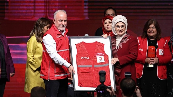 Cumhurbaşkanı Recep Tayyip Erdoğan'ın eşi Emine Erdoğan, Türk Kızılay tarafından Haliç Kongre Merkezi'nde düzenlenen "Uluslararası Kırmızı Yelek Gönüllülük Ödül Töreni"ne ilişkin sosyal medya hesabından paylaşımda bulundu.