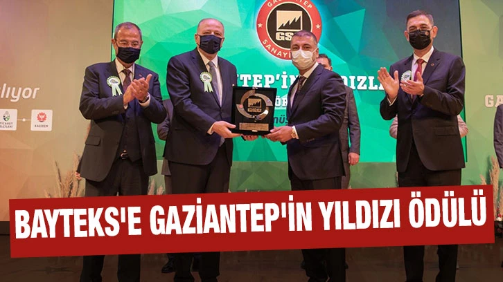 Türkiye'nin ilk 500 büyük sanayi kuruluşu arasında yer alan Bayteks adına, başarılarıyla şehrimizin ve ülkemizin üretimine, ihracatına katkılarından dolayı Gaziantep'in Yıldızları Ödül Törenin’ de Yönetim Kurulu Başkanı Hasan Gürkan Bayram ödülünü AK Parti Gaziantep Milletvekili Nejat Koçer'den aldı.