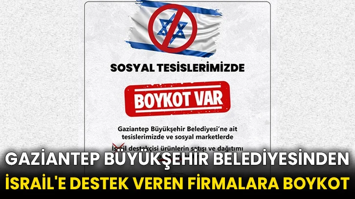 Büyükşehir Belediyesinin X sosyal medya platformundan yapılan açıklamada, "Sosyal marketlerimizde boykot var. Gaziantep Büyükşehir Belediyesine ait tesislerimizde ve sosyal marketlerde İsrail destekçisi firmaların ürünlerinin satışı ve dağıtımı yasaklanmıştır." ifadeleri kullanıldı.
