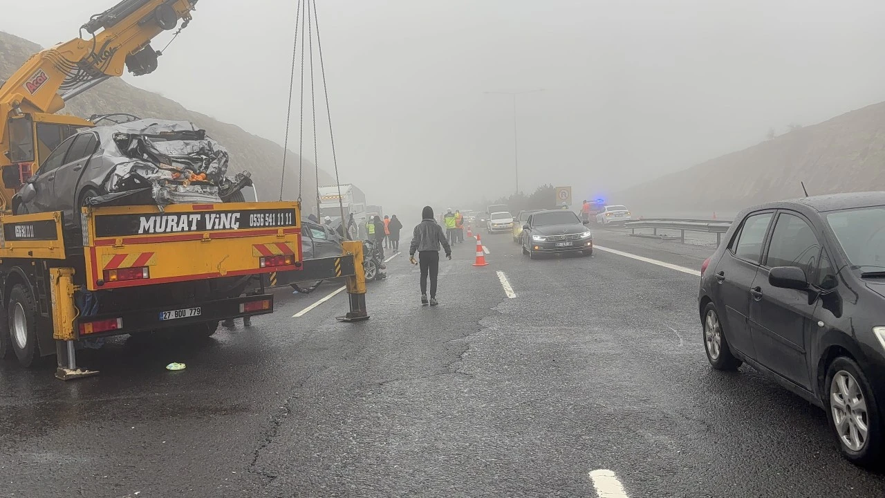 Gaziantep-Şanlıurfa otoyolunda 2 kişinin ölümü, 11 kişinin de yaralanmasıyla sonuçlanan feci kazaya karışan araçların olay yerinden kaldırılmasının ardından trafik akışı kontrollü şekilde sağlanmaya başlandı. Uzun araç kuyruklarının oluştuğu ve yoğun sisin hakim olduğu otoyolda trafik akışı kontrollü şekilde sağlanıyor.