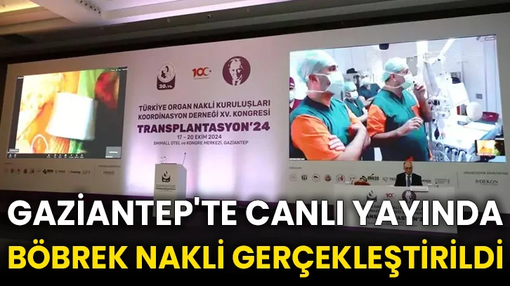 Türkiye Organ Nakli Kuruluşları Koordinasyon Derneğince bu yılki ayağı Gaziantep'te gerçekleştirilen kongrede, Kahraman Eruslu Böbrek Nakli Hastanesi'nde yapılan nakil, kongre salonuna canlı bağlantıyla aktarıldı.