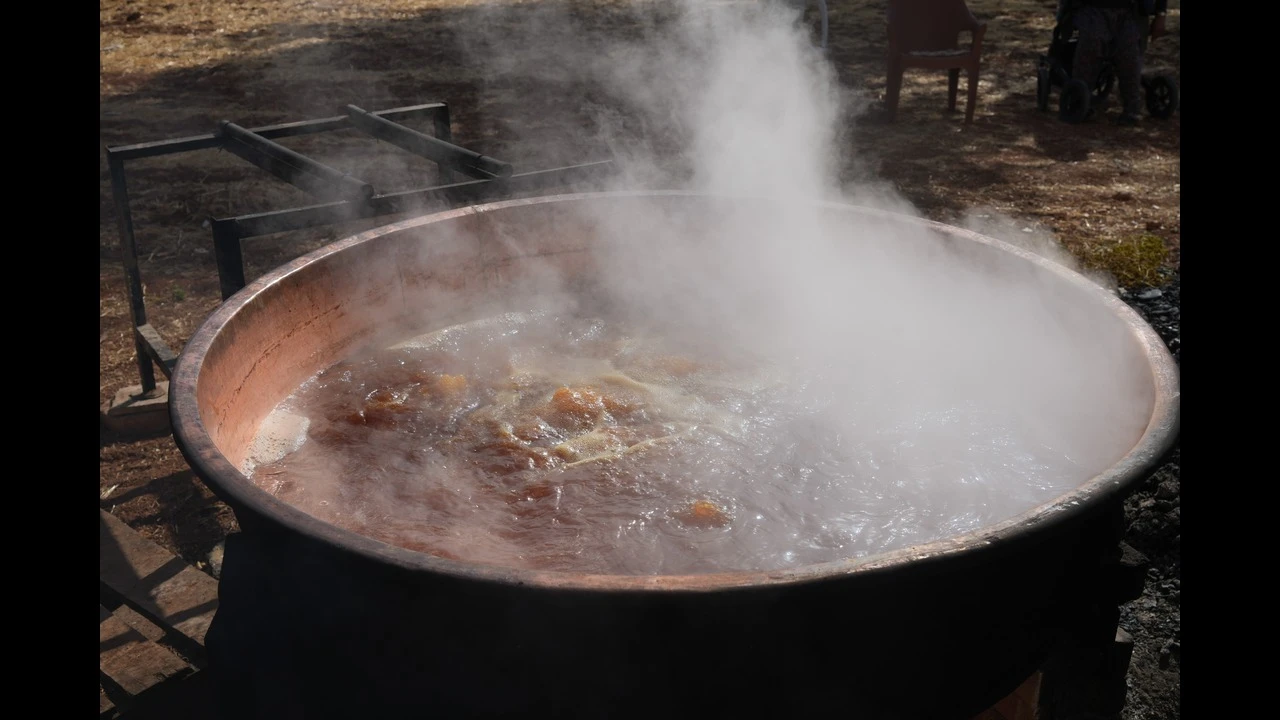 Yaklaşık 3 saat odun ateşinde kaynatıldıktan sonra şıra halindeki üzüm suyu, pekmez kıvamını alırken, kaynatma esnasında sürekli bir kişi kazanın başında delikli süzgeç ile karıştırma işlemi yapıyor ve iyice berraklaşan şerbet son olarak bakır kazana aktarılıyor. Her aşaması için bin bir emek verilirken kaynayan pekmezin üzerinden köpüğü alınarak daha sonra ise bir süre soğumaya bırakılıyor. Kentte bağbozumu döneminde çiftçilerin pekmez ve diğer şire ürünleri hazırlama mesaileri yaklaşık bir ay sürüyor.