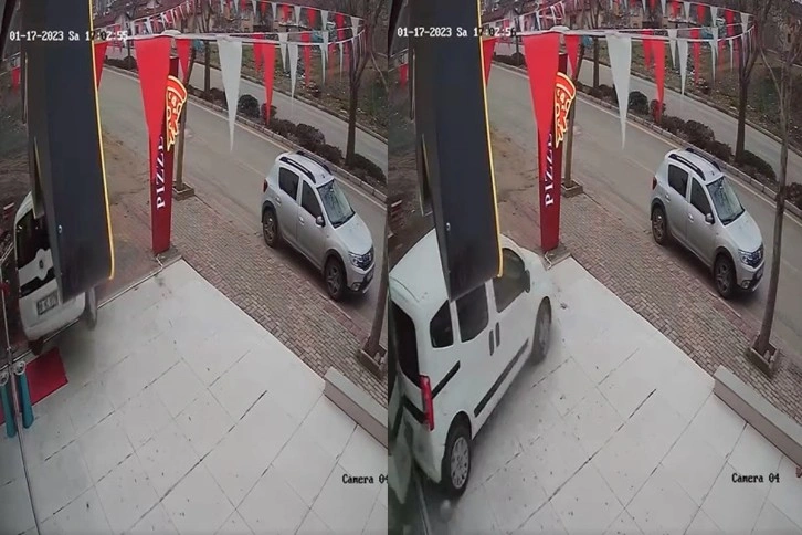 Öte yandan, kaza anı bir iş yerinin güvenlik kamerasına anbean yansıdı. Görüntülerde, kontrolden çıkan aracın savrularak önce kurye motosikletine ardından iş yerinin vitrinine çarptığı yer alıyor.