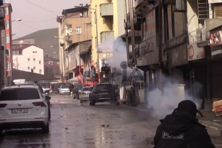 Hakkari'nin Yüksekova ilçesinde geçtiğimiz Pazartesi günü bir grup, bir partinin seçim irtibat bürosu açılışı için toplandı. Geniş güvenlik önlemlerinin alındığı açılış sonrası maskeli eylemciler, polise taşla saldırarak bölücü terör örgütü lehine slogan attı. Bunun üzerine polis ekipleri, eylemcilere uyarıda bulundu. Uyarıların dikkate alınmaması üzerine çevik kuvvet ekipleri eylemcilere biber gazıyla müdahale etti. Olayda polis ekipleri eylemcileri dağıtmak için TOMA'yla tazyikli su kullandı. Müdahale sonucu eylemciler dağılırken, ara sokaklarda çatışmalar devam etti. Yaşananlar ise kameralara saniye saniye yansıdı.