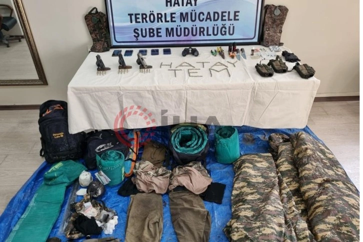 Yayladağı kırsal alanındaki bir noktada zulalanmış vaziyette 3 adet ruhsatsız tabanca, 146 adet fişek, 1 adet dürbün, 5 adet uyku tulumu, 1 top sargı bezi, 5 adet enjektör, 2 adet bıçak, 2 adet pense yaşamsal malzemeler ele geçirildi.