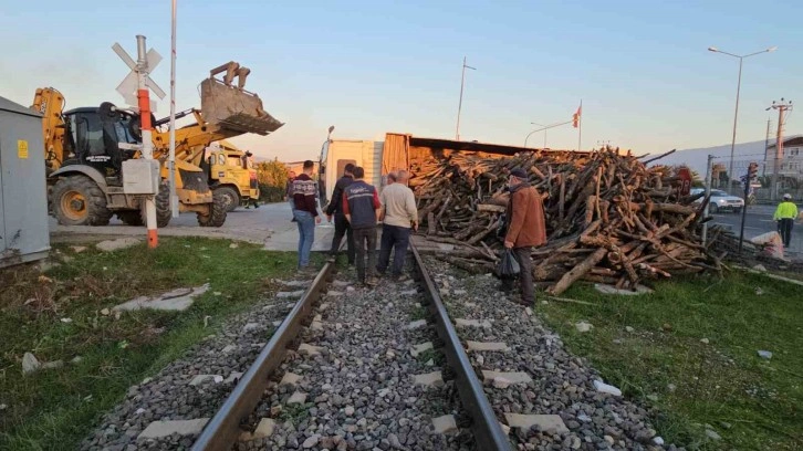 Aydın’ın Nazilli ilçesi girişindeki hemzemin geçitte bir kamyonun demiryolu üzerinde devrilmesi sonucu tren seferleri durdu. Devrilen kamyonun kaldırılmasının ardından tren seferleri ve trafik bir saat 15 dakika sonra normale döndü.