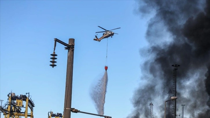 Limandaki konteynerlerde 6 Şubat'ta çıkan yangına dün Kara Kuvvetlerinin helikopterleri ile Hava Kuvvetlerinin uçağı müdahale etmiş ve uçaktan alevlere "yangın söndürme topu" da atılmıştı.