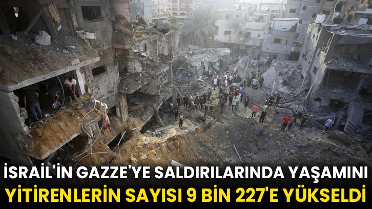 Filistinli yetkili, İsrail saldırılarında Gazze'de 7 Ekim'den bu yana öldürülenlerin sayısının 3 bin 826'sı çocuk, 2 bin 405'i kadın olmak üzere 9 bin 227'ye çıktığını, en az 23 bin 516 kişinin de yaralandığını belirtti.