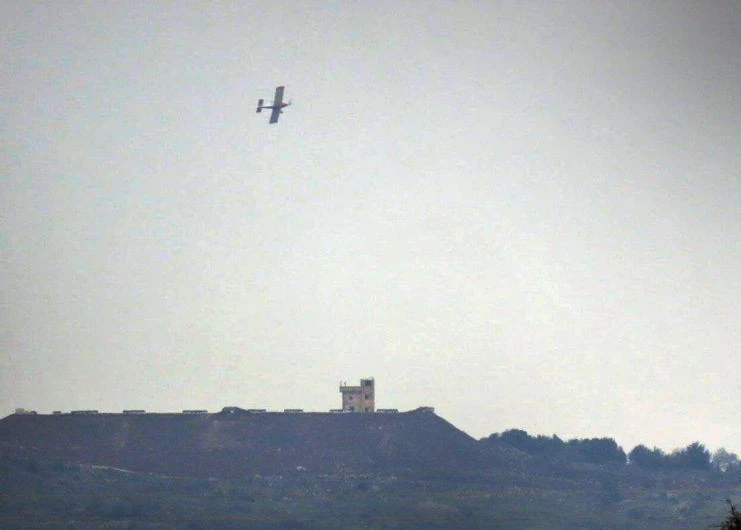 İsrail savaş uçağının, kuzey Kuneytra kırsalındaki El-Hurriya köyünden geçerek, Cebata El-Haşab kasabasından El-Hamidiyah köyüne kadar uzanan tarım arazilerine belirlenemeyen kimyasallar püskürttüğünü bildirdi.