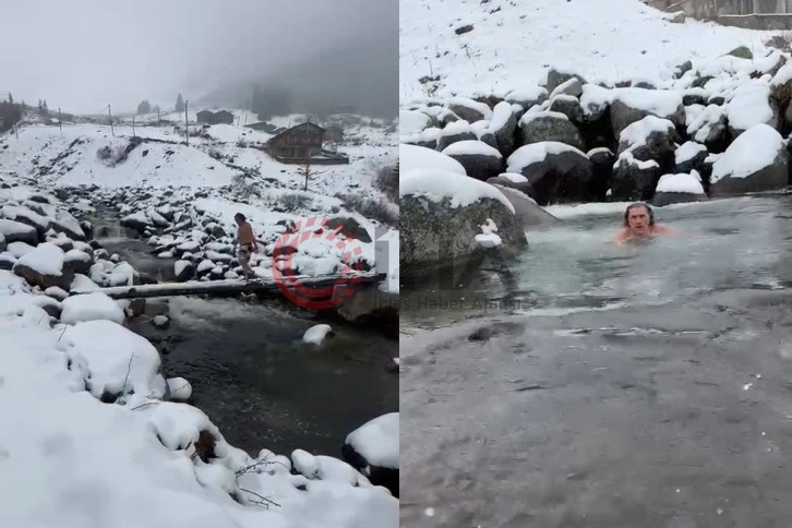Rize'de yaşayan Hasan Önder, her yıl geleneksel olarak gerçekleştirdiği 'karda yüzme' etkinliğini bu yıl da gerçekleştirdi. Çamlıhemşin ilçesi bin 800 rakımdaki Elevit Yaylası'na çıkan Önder, her yıl olduğu gibi bu yılda kar ve soğuğa aldırmadan adeta buz tutan dereye girerek yüzdü. Önder geçtiğimiz Şubat ayında 7.'si gerçekleşen 'Kış Yüzme Şenlikleri' etkinliğine öncülük etmiş ve kara aldırış etmeden Fırtına Deresi'nin buz gibi suyuna girmişti.