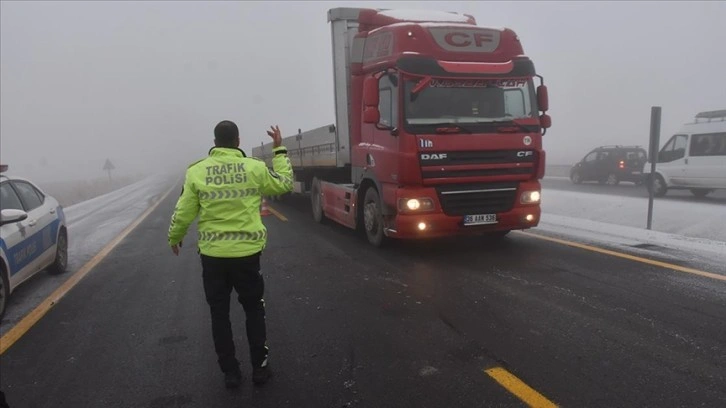 Polis ekipleri güvenlik önlemi alarak tırların ilerleyemediği bölgedeki yolun bir şeridini ulaşıma kapattı. Ardından Karayolları ekipleri yolda kar küreme ve tuzlama çalışması yürüttü.