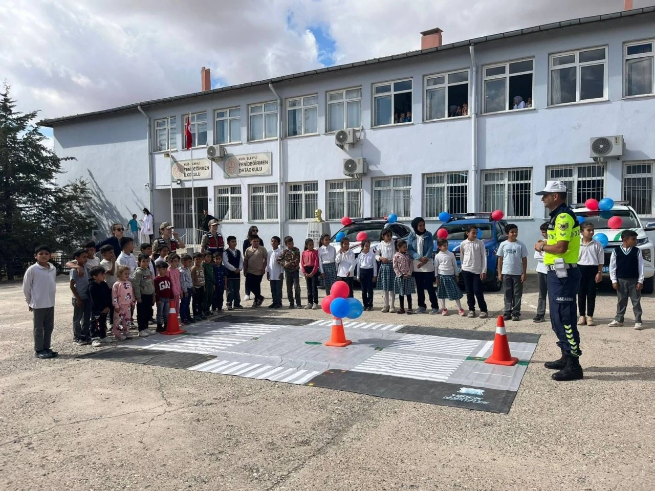 Kilis’in Elbeyli ilçesine bağlı Yenideğirmen Köyü İlk ve Ortaokulu'nda Trafik Jandarması Timi tarafından öğrencilere trafik eğitimi verildi. Ekipler, ilkokul öğrencilerine yaya ve okul geçitlerinin kullanımı, okul servislerinde uyulması gereken kurallar, bisiklet kullanımı sırasında dikkat edilmesi gereken hususlar ve genel trafik kuralları hakkında bilgilendirme yaptı.