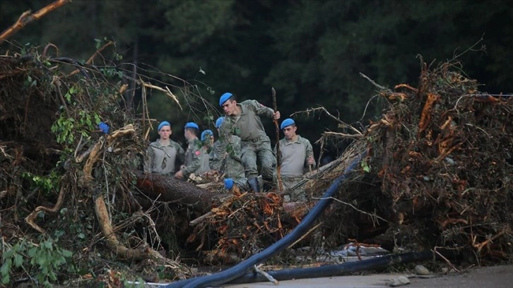 Arama kurtarma çalışmalarına çok sayıda komando birlikleri de katılıyor. Orman köylüsü selin sürüklediği tomruk ve kütüklerin kaldırılması çalışmalarına yardım ediyor. Arama kurtarma köpekleri de bölgede arama çalışmalarına katılıyor.