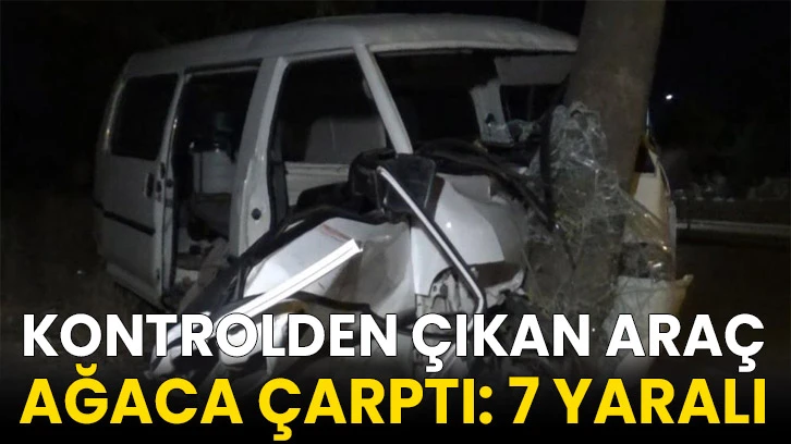 Kontrolden çıkan otomobil ağaca çarptı: 7 yaralı