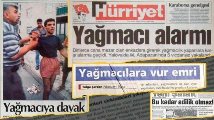 21 Ağustos 1999 Hürriyet: Gazete "Yağmacıya dayak" haberiyle okurlarının karşısına çıktı.