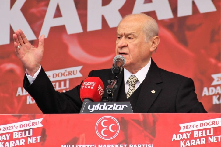 Türkiye'nin 2023 yılında iki büyük siyasi ve tarihi süreci yaşayacağını belirten Devlet Bahçeli, "İlki, Cumhurbaşkanı ve 28'inci Dönem Milletvekili Genel Seçimleri'dir. İkincisi de, Türkiye Cumhuriyeti'nin 100'üncü yıl dönümüdür. Türk milletinin birliği, dirliği ve Türkiye'nin küresel güç mertebesine ulaşması amacıyla geceyi gündüze katan Cumhur İttifakı oldukça yenilmemizi ve yıkılmamızı hedefleyenler her zaman hüsranla tanışacaklardır. Bundan kaçış yoktur. Kurtuluşları söz konusu değildir. Artık bütün yollar 2023 seçimlerine açılmaktadır. Kararınız kaderinizi, iradeniz aydınlık bir geleceğin rotasını belirleyecektir. Vakit anbean yaklaşmakta, çember günbegün daralmaktadır. Bizim adayımız belli, kararımız nettir. Cumhurbaşkanı adayımız Recep Tayyip Erdoğan'dır. Hedefimiz Recep Tayyip Erdoğan'ın açık ara farkla tekrar Cumhurbaşkanı seçilmesi, TBMM'de milletvekili sayısı ve siyasal destek itibariyle çok güçlü bir Milliyetçi Hareket Partisi grubunun ve Cumhur İttifakı'nın tezahür etmesidir. Samimi ve kesintisiz mücadelemizin gayesi bu amaçlara ulaşmaktır. Zillet ittifakı baştan ayağa yanlıştadır ve bu ittifak Türkiye'nin önüne koyulmuş takoz partilerden mürekkeptir. Bunların geçim kapıları yalandır, dedikodudur, iftiradır, fesattır" dedi.
