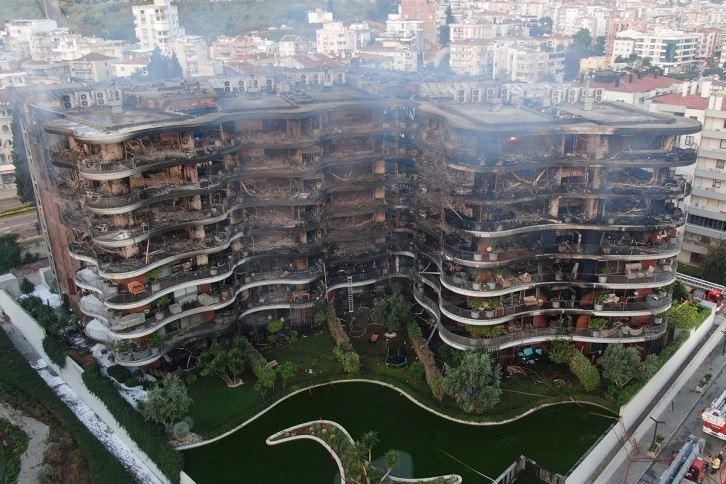 Öte yandan yangın, 7 saatin ardından ekipler tarafından güçlükle kontrol altına alındı. Dairelerdeki soğutma çalışmaları sürerken, yangının oluşturduğu hasar havadan görüntülendi.Akın Küçükkurt - Mustafa İç