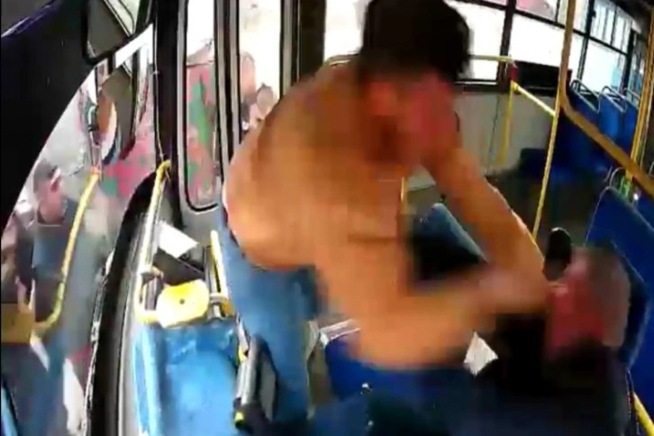 Halk otobüsünde dehşet anları, defalarca yumrukladı