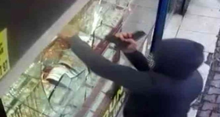 Gaziantep'te bir kuyumcunun vitrin camının silah kabzasıyla kırıldıktan sonra yarım kilo altının çalındığı anlara ait güvenlik kamera görüntüleri ortaya çıktı. Görüntülerde, şüpheli şahsın vitrin camını kabza ile kırdıktan sonra altınları çalarak kaçması ve kuyumcunun peşinden koşma anları saniye saniye yer aldı.