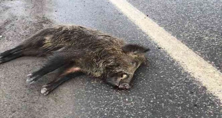 Kazayı gören vatandaşlar, yolda telef olan yaban domuzunu başka kazalara yol açmaması için yol kenarına aldı.