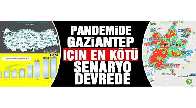 10-16 Nisan 2021 tarihli 100 bin kişide illere göre vaka sayısında Gaziantep’te vaka sayısı 293.36 oldu. Vaka sayılarının artmaya devam ettiği Gaziantep’te Hayat Eve Sığar (HES) uygulamasındaki risk haritasının tamamen kırmızıya döndüğü, yoğun bakım doluluk oranının ise yüzde 81 seviyesine çıktığı öğrenildi.