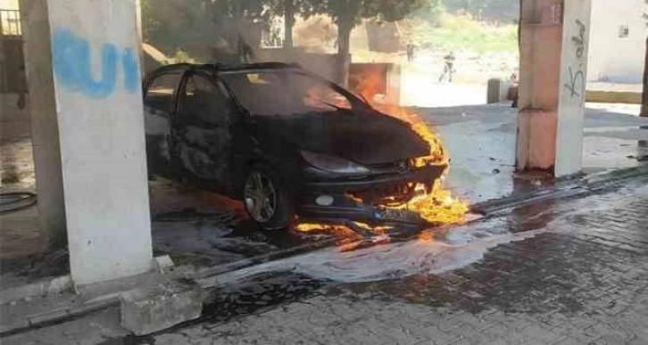 Kahramanmaraş'ta park halindeki otomobil yanarak kullanılamaz hale geldi.