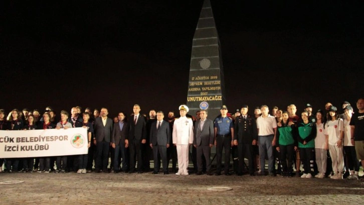 Kocaeli'nin Gölcük ilçesinde Kavaklı Sahili'ndeki Deprem Anıtı önünde Marmara Depremi'nin 24. yılı dolayısıyla düzenlenen anma etkinliğinde, depremin yaşandığı saat olan 03.02'de saygı duruşunda bulunulup, depremde yaşamını yitirenler için dua edildi.