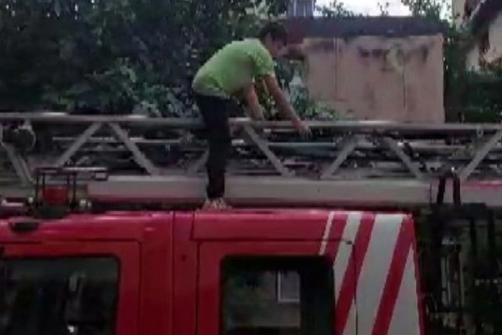 Olay, Eyüpsultan Mahallesi'nde yaşandı. Edinilen bilgiye göre, dut toplamak için metrelerce yükseklikteki ağaca tırmanan çocuk geri inemedi. Çevredekilerin durumu fark etmesi üzerine olay itfaiye ekiplerine bildirildi. Merdiven aracıyla olay yerine gelen itfaiye ekipleri ağaçtan inemeyen çocuğu bulunduğu yerden alarak ağaçtan indirdi. O anlar ise vatandaşların cep telefonu kamerasına yansıdı.