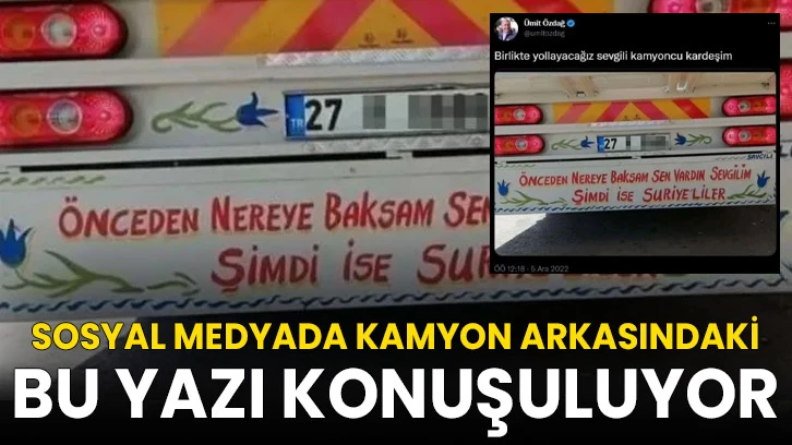 Gaziantep'te yazıldığı iddia edilen kamyon arkası yazısının Suriyeli sığınmacılara ilişkin mesajı dikkat çekti.