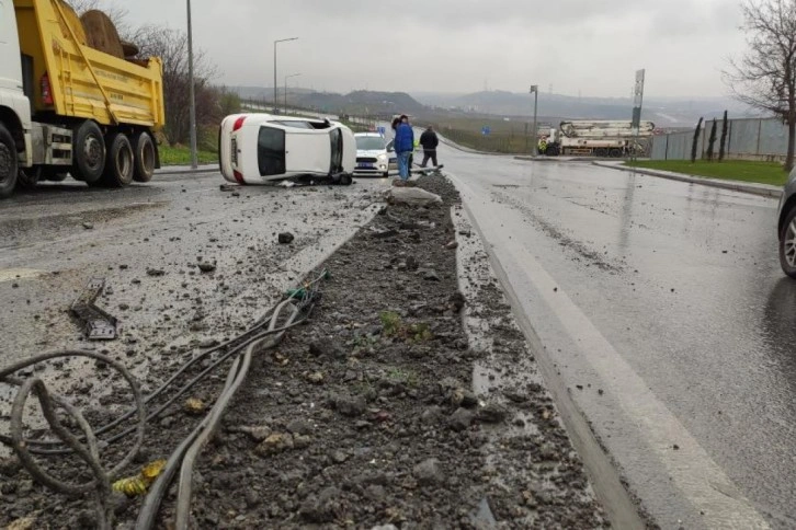 Otomobil önce refüje, ardından trafik aydınlatma direğine çarptı. Direk çarpmanın etkisiyle devrilirken, karşı şeride geçen otomobil yaklaşık 20 metre kadar sürüklendikten sonra yan yattı.
