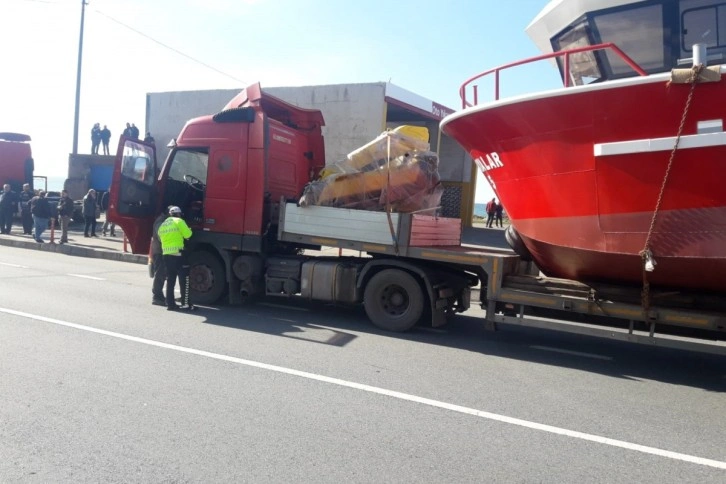 Alınan bilgiye göre, Trabzon'un Sürmene ilçesinin Çamburnu tersanesinden yüklediği balıkçı teknesini Trabzon'a getiren 61 ADM 806 plakalı araç, Arsin ilçesi Yeşilyalı mahallesinde üst geçidin altından geçerken balıkçı teknesi üzerinde bulunan Ahmet Saltık (46) üst geçidi fark etmeyerek kafasını üst geçide çarptı.