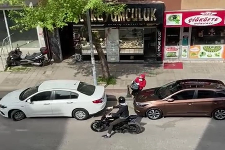 Soyguncuların kaçış anı kameradaÖte yandan soygunu gerçekleştiren iki şüphelinin kaçış anları da çevredeki bir vatandaşı cep telefonu kamerasına yansıdı. Görüntülerde şapkalı ve cerrahi maskeli şüphelinin elinde bir poşet altın ve ziynet eşyasıyla kuyumcudan çıktığı ve motosikletli şüphelinin arkasına bindikten sonra hızla olay yerinden kaçtıkları görülüyor.Halit Arslan