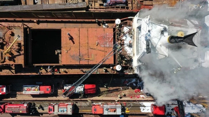 Tuzla'da tersanede bakıma alınan yük gemisinde yangın çıktı