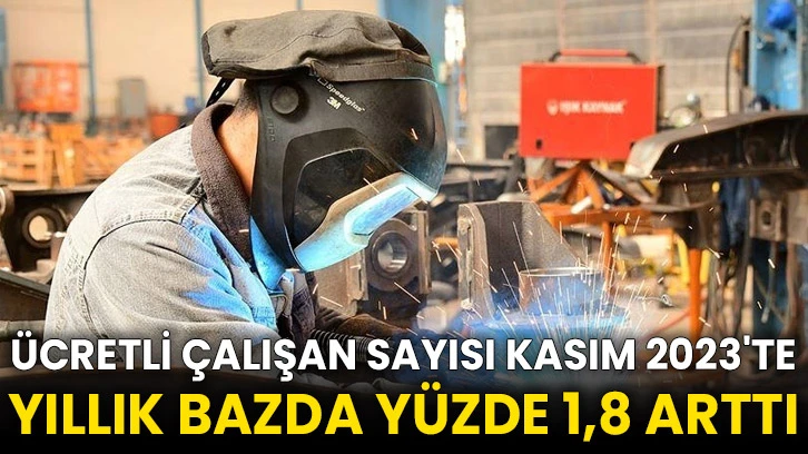 Buna göre, Kasım 2022'de 14 milyon 833 bin 144 kişi olan sanayi, inşaat ve ticaret-hizmet sektörleri toplamında ücretli çalışan sayısı, Kasım 2023'de yıllık bazda yüzde 1,8 artışla 15 milyon 106 bin 556 kişiye yükseldi.