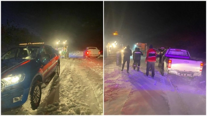 Ekiplerin çalışmasıyla bölgeye giden yolun açılmasının ardından mahsur kalan 3 araçtaki 16 kişi kurtarıldı.