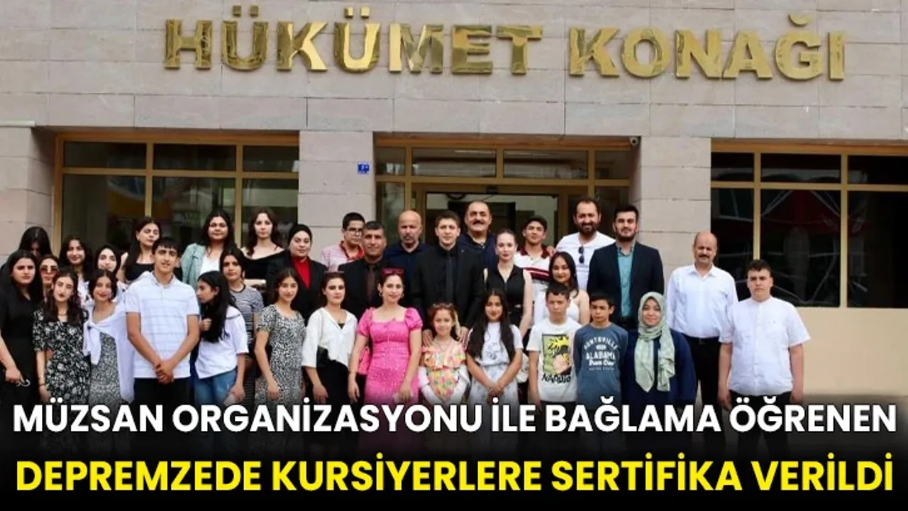 Kültür ve Turizm Bakanlığı tarafından desteklenen proje kapsamında Türkiye Müzisyenler ve Sanatçılar Federasyonu (MÜZSAN) organizasyonu ile bağlama çalmayı öğrenen 250 depremzede öğrenci düzenlenen törenle sertifikalarını aldı.