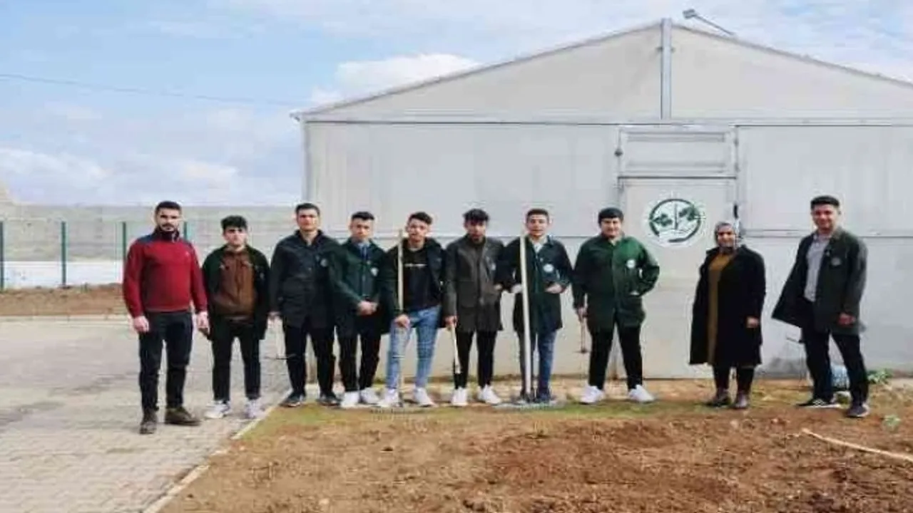 Şanlıurfa'da lise öğrencileri okulun bahçesindeki serada sebze ve yeşillik yetiştiriyor.