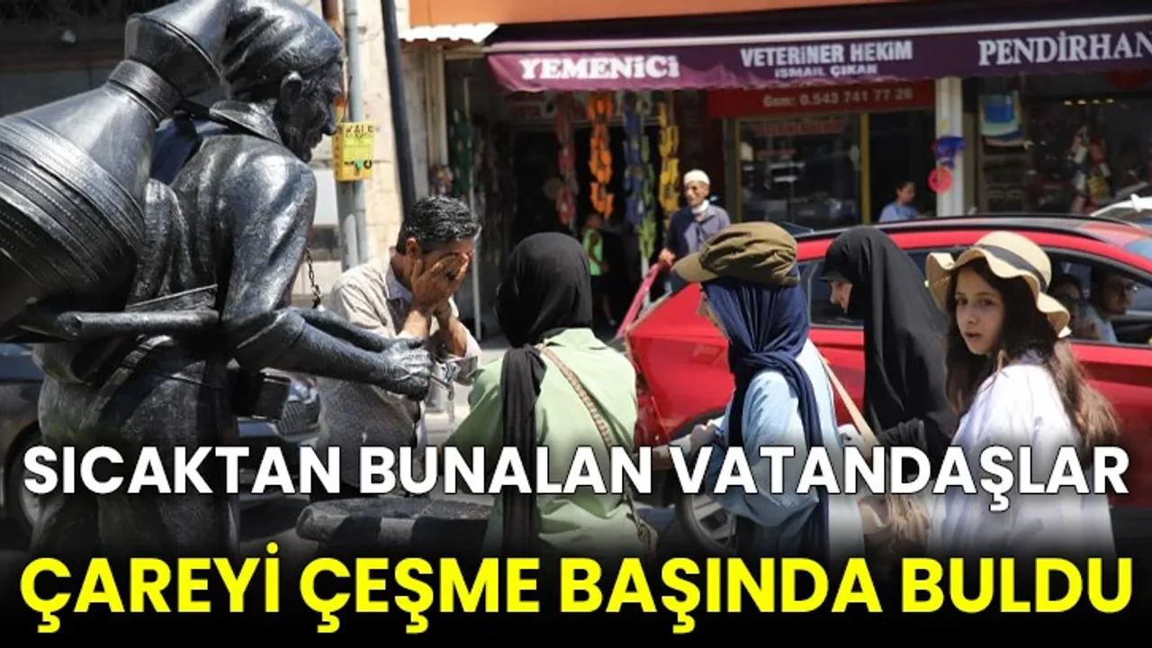 Hava sıcaklığının 40 derece ölçüldüğü Gaziantep'te sıcaktan bunalan vatandaşlar, çeşme başlarında serinlemeye çalıştı.