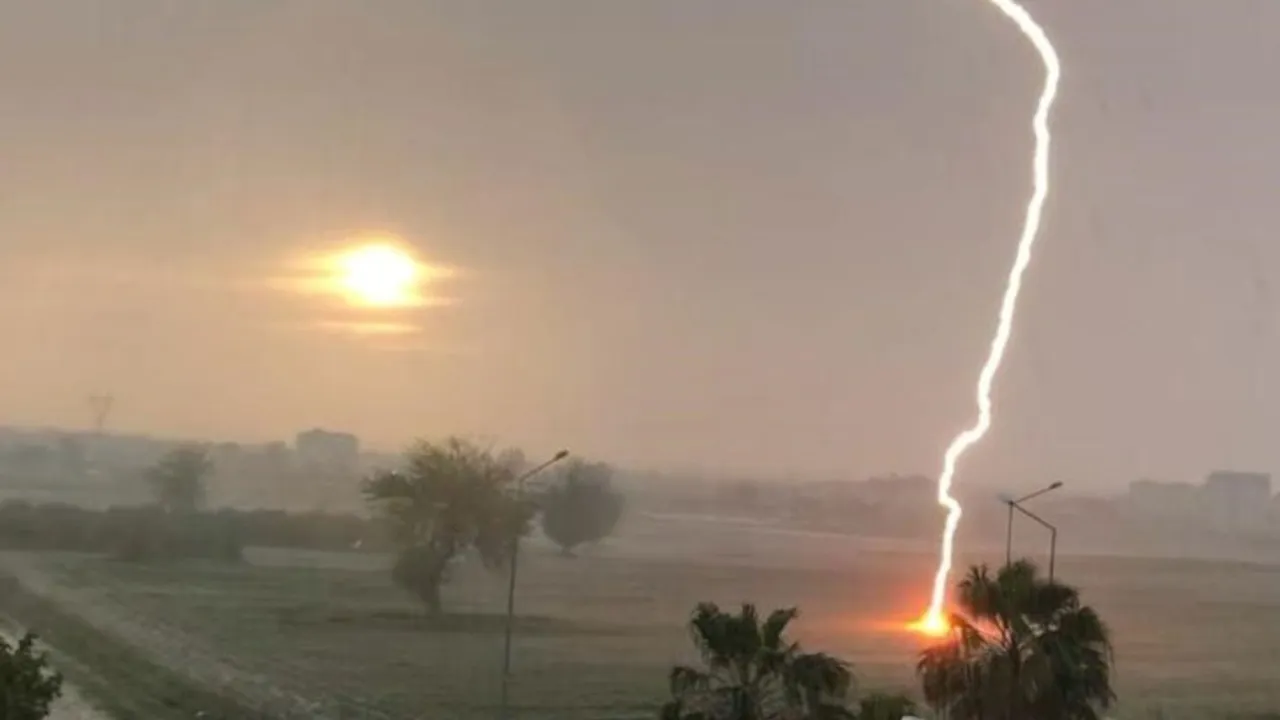 Osmaniye'nin Kadirli ilçesinde yıldırım düşme anı cep telefonu kamerasıyla anbean kaydedildi.