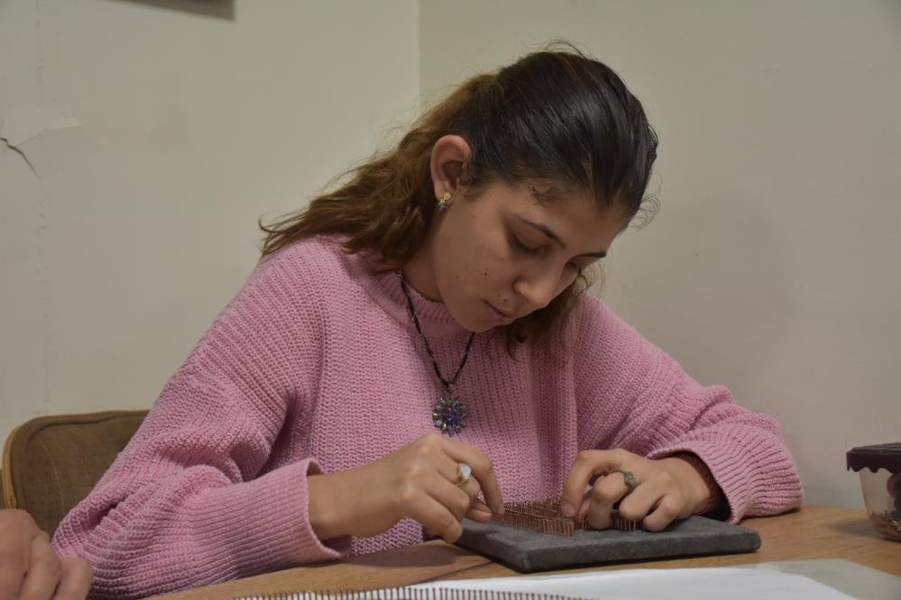 Kızı Beyza Nur'un Osmanlı döneminin unutulmaya yüz tutmuş el sanatları arasında yer alan ve tellerin çivilerin arasından geçirilmesiyle yapılan filografi tabloların dikkatini çekmesi üzerine kursa başvuran anne Şule Nergiz Şenel, filografi sanatçısı ve kurs eğitmeni Fatoş Karayılan'ın desteğiyle kızının kaydını yaptırdı.