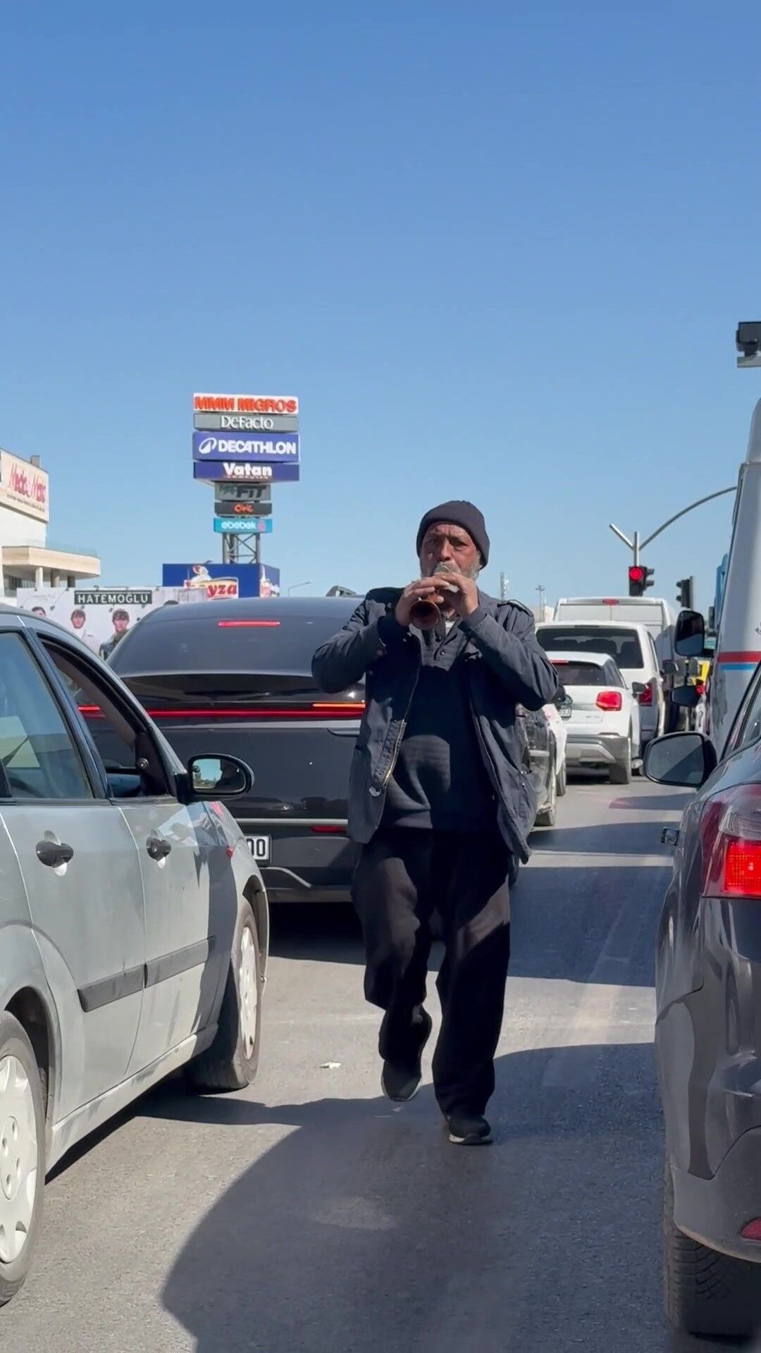 Adana'nın kanayan yarası cam silen şahıslardan sonra şimdi de zurnacılar kırmızı ışıkta sürücülerden para talep ediyor. Yüreğir ilçesi Girne Bulvarı'nda trafik ışıklarında duran araçların arasında dolaşarak zurna çalan ve sürücülerden para talep eden şahıs, kırmızı ışıkta bekleyen bir motosikletlinin yanına yaklaştı.